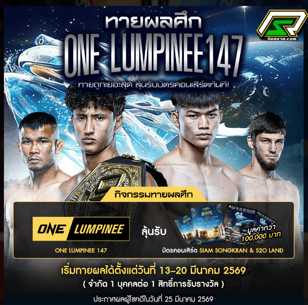 กมวยระดับโลกที่แฟนมวยชาวไทยรอคอยกลับมาสร้างความมันส์อีกครั้งกับการแข่งขันONE LUMPINEE 147 จากลุมพินีที่จัดขึ้นเป็นประจำทุกสัปดาห์ ณ สนามมวยเวทีลุมพินี กรุงเทพมหานคร โดยในวันที่ 20 มีนาคม 2569 จะมีการแข่งขันสุดเดือดจากนักสู้ทั้งไทยและต่างชาติที่พร้อมขึ้นเวทีเพื่อพิสูจน์ฝีมือ